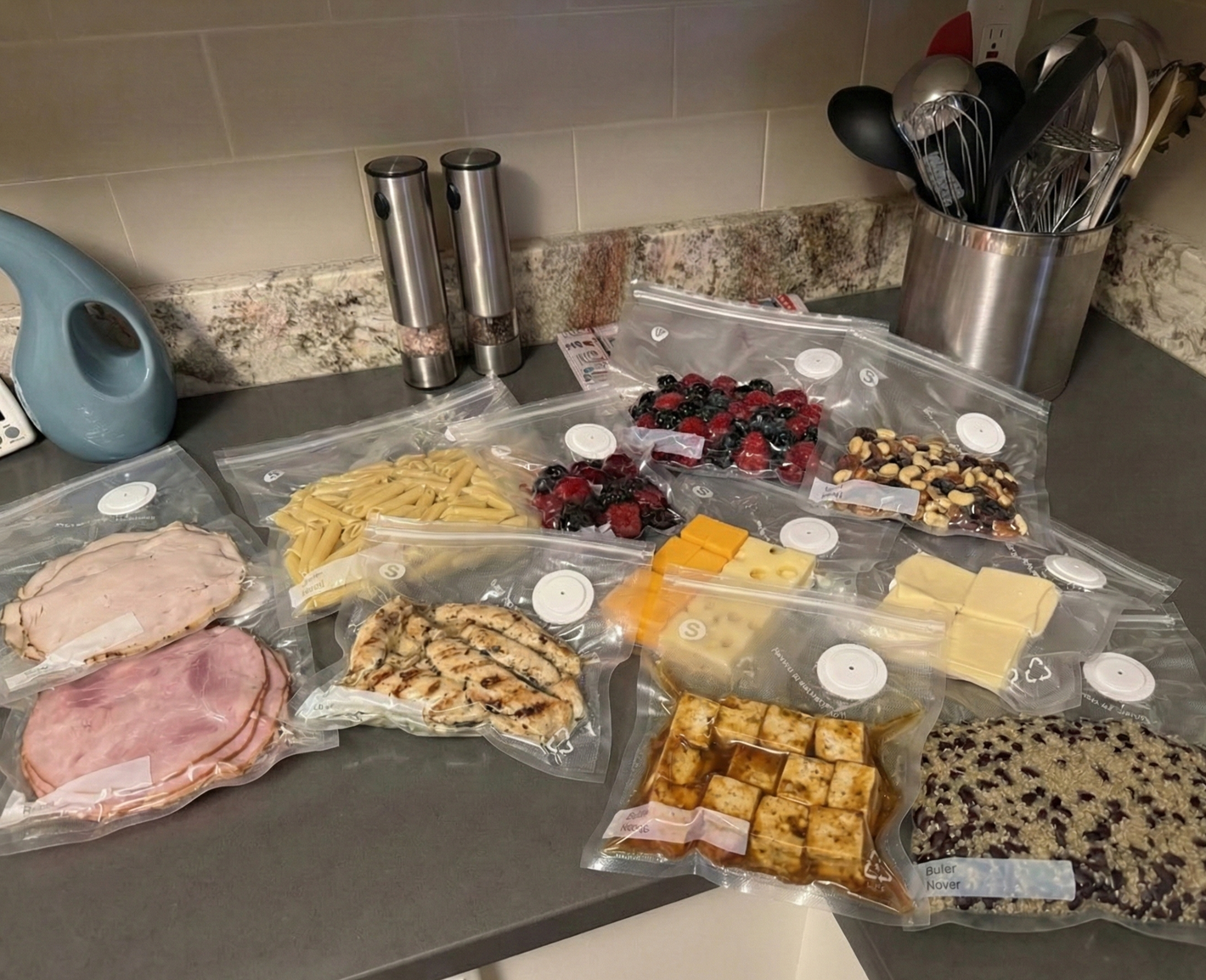 Engineered with industrial-grade technology for professional results at home.60kPa Vortex suction: Removes 99.9% air in 8 seconds.GS mart Pressure sensor: Won't crush delicate foods(Chips/Berries)High-Density Battery:1,000 seals on a single charge
