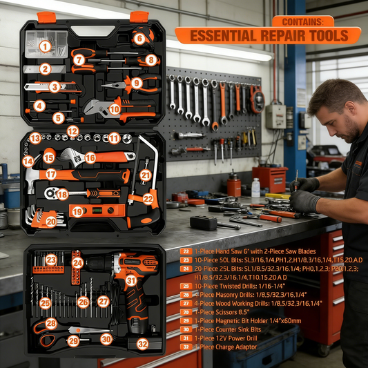 All-in-One Home & DIY Tool Set with 9-Pocket Storage Bag, Multi-Purpose Repair Kit