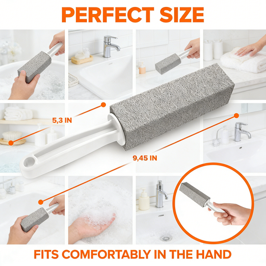 2-Pack Pumice Stone Cleaning Brush with Handle, Multipurpose Bathroom & Kitchen Stain Remover